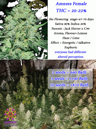 Its appearance and smell are so potent that it is hard to believe that this is a variant. Its fragrant range of herbs, haze and lemon flavours will astonish you. A very strong plant that requires little knowledge and nutrition, that is highly resistant to top rot and has developed a limited foliage so that each flower can catch the necessary light for exuberant flower production. When switching to flowering, the Amnees takes an extra spurt and will easily double in rel.