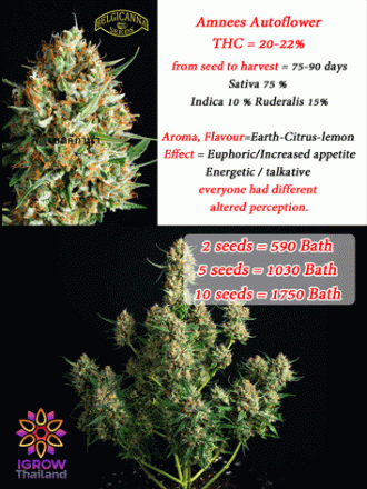 Our Amnees Autoflower needs 70 to 85 days from germination to give beautiful results. Usually, you should consider 85 days to achieve the best result/quality. Do not expect the same result as from the female version but for the autoflower lover the experience is almost the same with a slightly less pungent lemon flavour and a somewhat lower yield. See also Amnees Female.